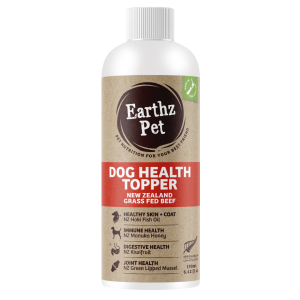 Earthz Pet Dog Health Topper for Medium/Large Dogs in the flavour Grass Fed Beef is a pet supplement made with premium New Zealand ingredients including: