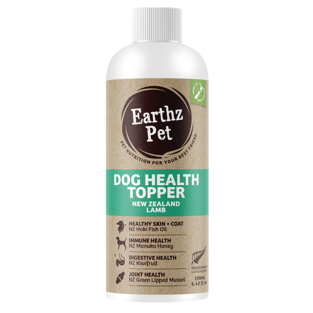 Earthz Pet Dog Health Topper for Medium/Large Dogs in Lamb flavour is a pet supplement made with premium New Zealand ingredients including: